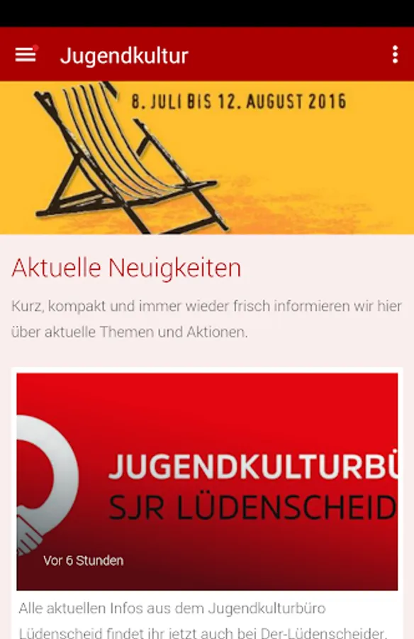 The support of the youth culture offices Lüdenscheid is the Stadtjugendring Lüdenscheid e V.- Our task:. Children and young people in Lüdenscheid. Here we inform you about the program of the Youth Council, actions and dates in the children and youth. With a wide and qualified offer for children and young people in Lüdenscheid.