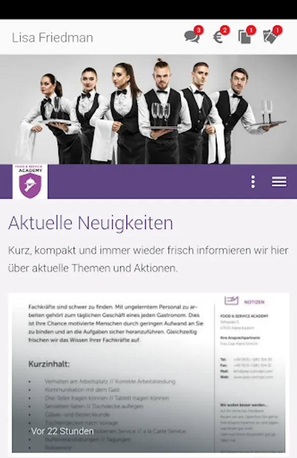 About the app all the information can be requested. It can be booked courses or already checked in advance and their own knowledge. Try looking in our active course? No? This should be guaranteed in any case, that learning, further training and making fun, and that the concept of service increasingly in gastronomy and hotels.