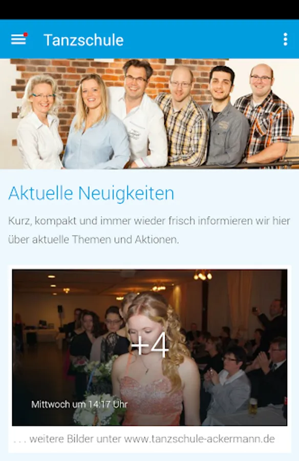 With our app you can find under "News" all about new dance courses and events. We can speak "pictures", so that you may an impression of our