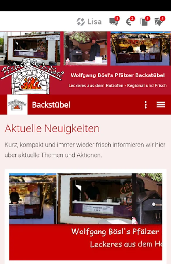 The app for all "fans" by Wolfgang Boesl's Palatine Backstübel. The current event dates, information on our products, information about our booth, pictures of booth, products and events, current discounts can be found here. In addition, you can easily book through the app for your event to us. Check it out, it's worth it.