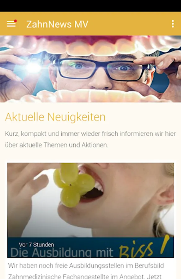 With the official app of the Dental Association of Mecklenburg-Vorpommern, you will receive important news about dentistry and always find the right dentist or emergency service in your area. With this app, but patients are also dental offices always up to date.