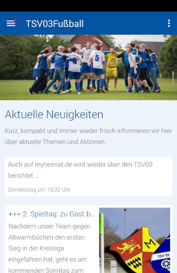 With this app, your news, events, results and match reports get directly to your mobile phone. Secure one of the TSV03Fußball app and always have your favorite club in your pocket there.