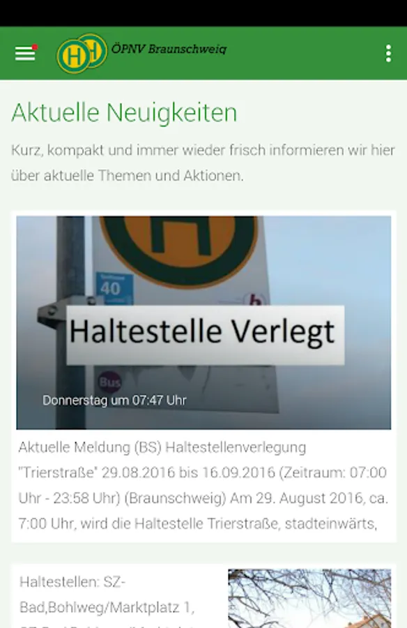 With our app you always stay in the loop and obtain promptly the information about any changes in public transport from the Braunschweig region.