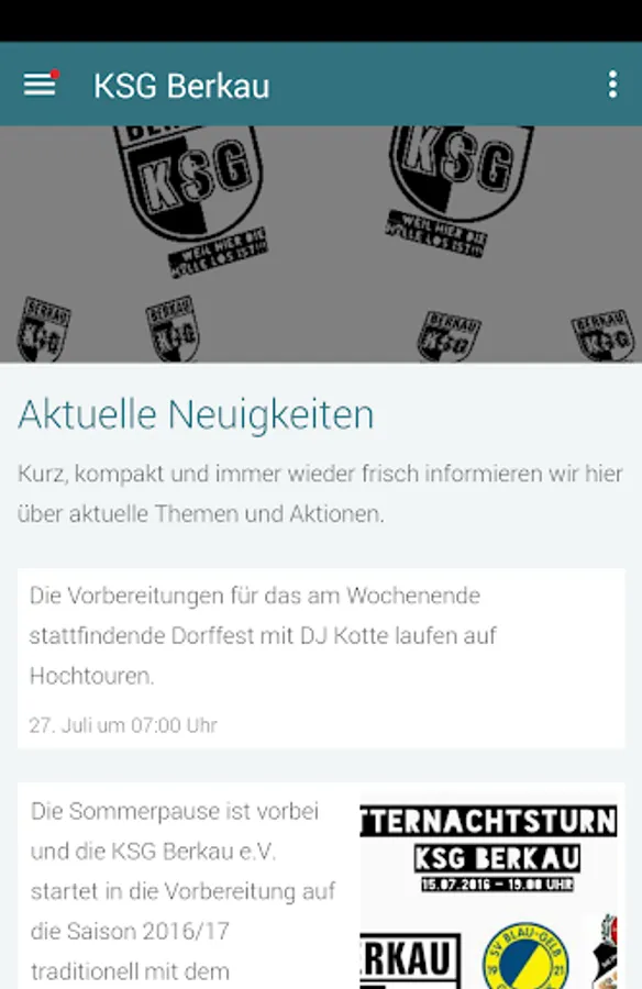 As the first club from the heart of the Altmark we present you our official App. Connect with your club and become part of a unique KSG family! Pluridisciplinary we inform up to all events and in addition to the sports fields, whether from our numerous youth departments or from the senior to the app you are always informed. Do not miss any event more and enjoy all the highlights exclusively on your phone. All dates Gamedays and current tables at a glance, as well as numerous pictures of the sports competitions and of course a look behind the scenes. KSG-App is your companion in everyday life and shows you clearly when which team or department plays or trains. For those interested, we also offer sample training: from soccer to gymnastics, to the Kegeln- with us for almost everyone there! KSG-App is a must for all athletes, members, supporters and members of the KSG Berkau. Be there and they invite you on your phone!