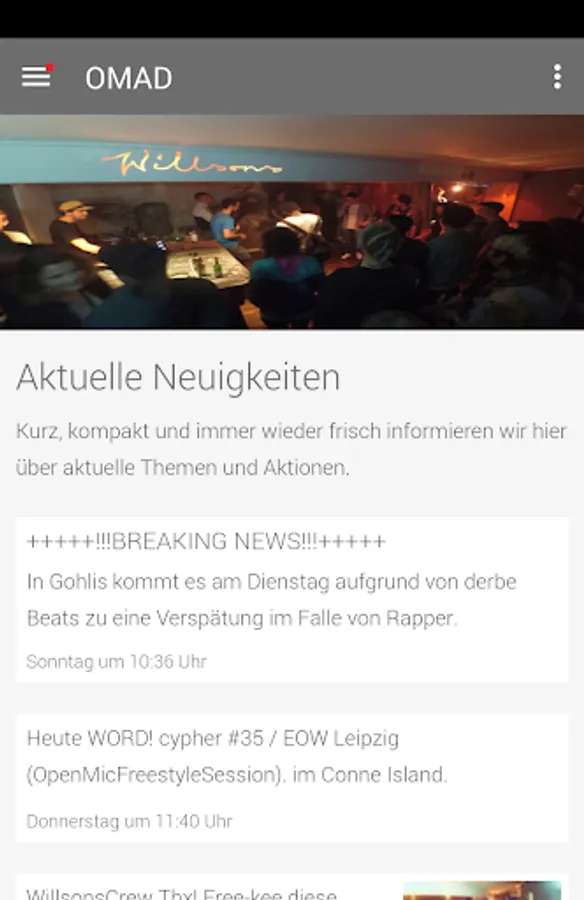 With the OMAD community app you buy not only printed OMAD Caps & Shirts etc but stay up-to-date where / when open mic sessions, children / adolescents jams and rap battles take place in prize money, posting / sharing / commenting Pictures / videos and invite your own stuff up.