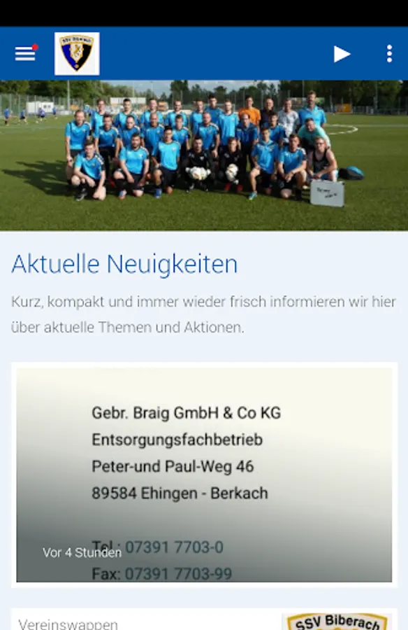 "With this app you are always informed about the events of the Soccer active men of SSV Biberach e.V. and can follow the Games through numerous photos.