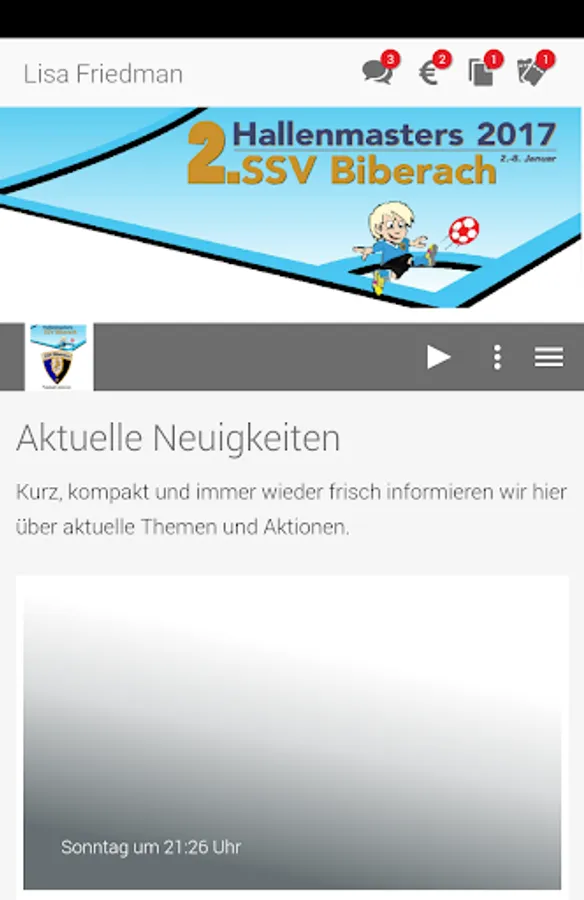 "With the app you are always informed about the events of the SSV Hallenmasters the SSV Biberach e.V. and can follow the Games through numerous photos.