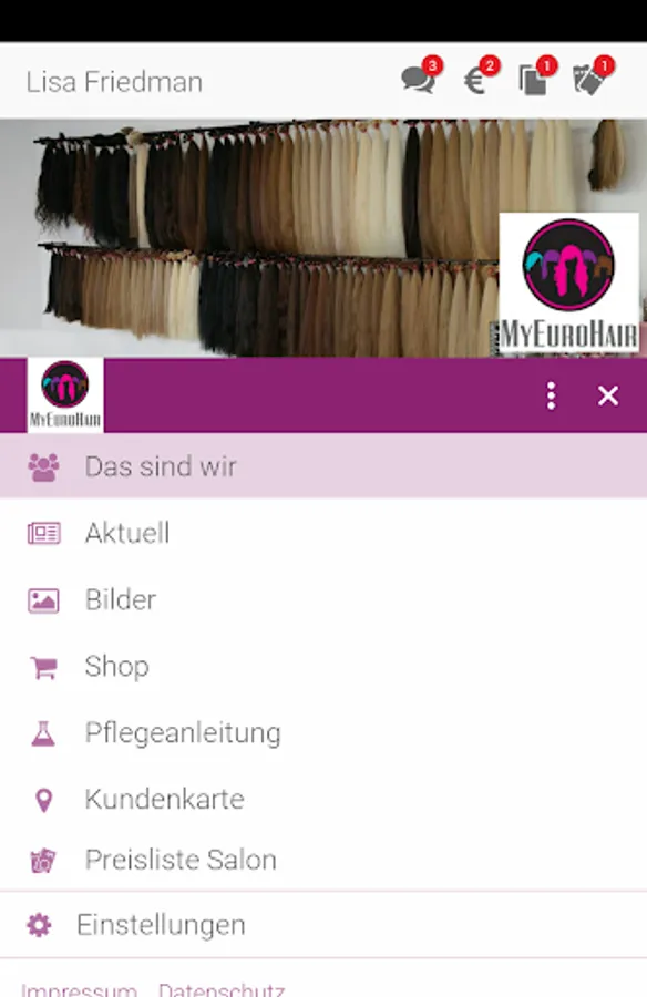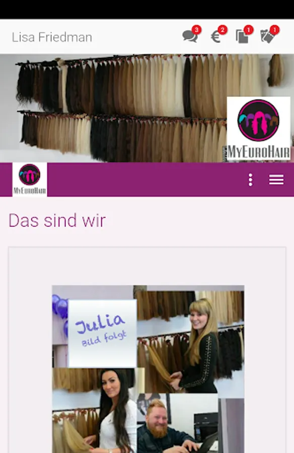 "MyEuroHair" stands for service around the hair, specializing in human hair extension.