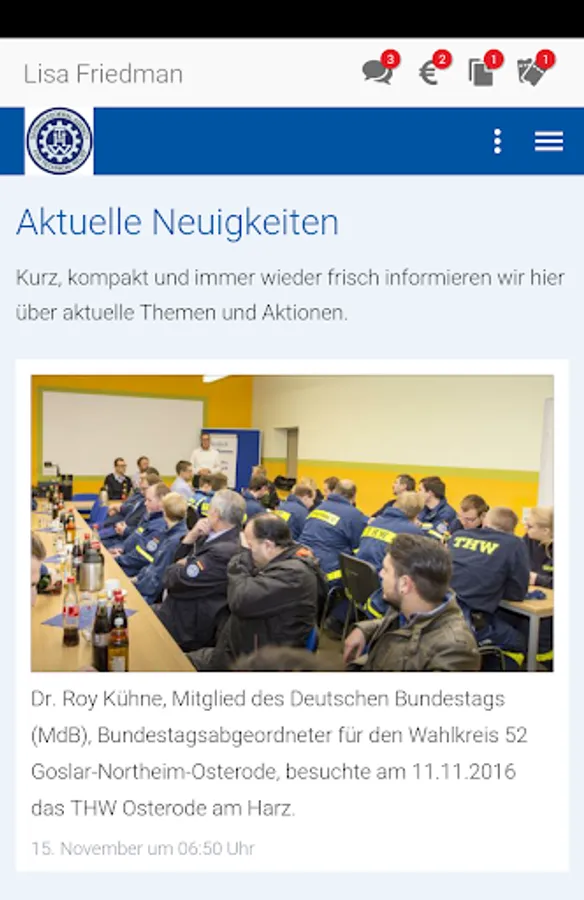 With our app you are always on our current assignments and activities to date, obtained thanks to numerous links and recommended impressions from our previous commitment and can also directly via app alongside our contact details and news and information on the subject of civil protection and themes for THW follow.