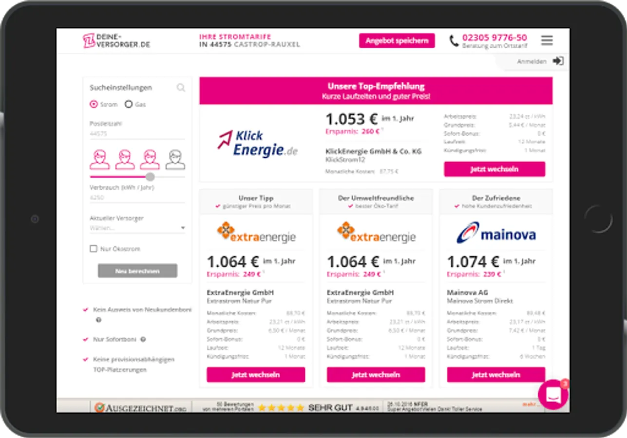 With us consumers nationwide easily and securely manage their gas and electricity supply and see without effort the best provider for your needs. We monitor the processes, optimize contracts and take care of everything so you do not have it.
