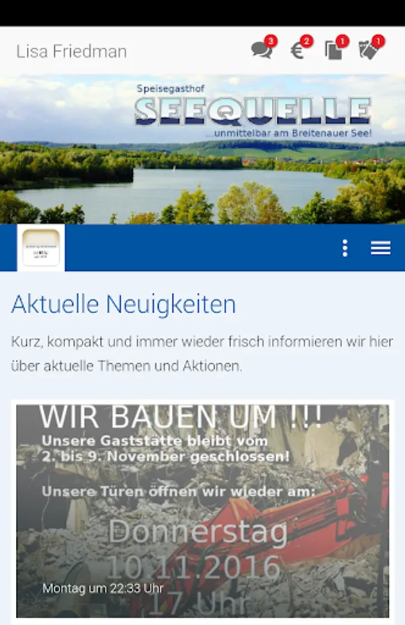 With our app you get seasonal and daily deals for lunch. The picture galleries offer a small tour of the dining tavern and a visual Vorgschmack in various dishes. Requests for dinner reservations and accommodation can be made with the app.