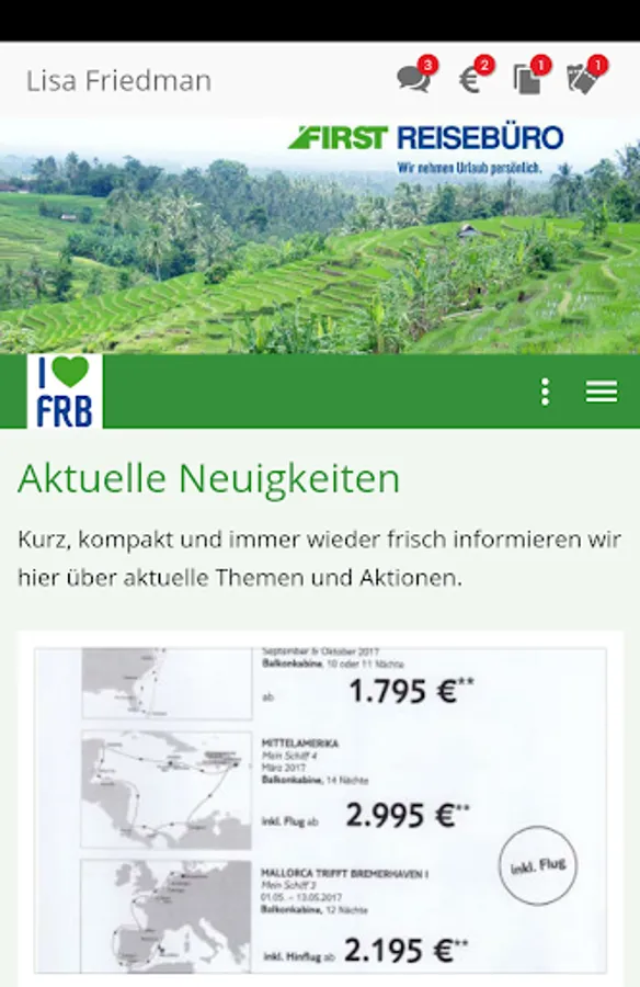 Immediately there is travel agency as a separate app in the store! All news, photos, events, dates at a glance and always with you. Thanks to push notifications to stay up to date. The contact back there also, simply by pressing a button. always provide this app for direct contact.