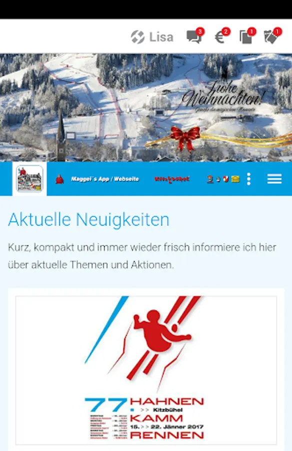 With this app you remain constantly in contact with Markus G. and always will be informed about current events in Kitzbühel. Also you can make your own opinion about the region and the people Markus G. thanks to many photo albums.