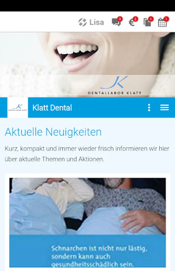 Klatt Dental is available as an official smartphone app now! All news, photos, events and dates always there. Through the push function, there's all the latest news direct to your smartphone. A simple push of the button, and the link to the right contact is made immediately. This app connects people.