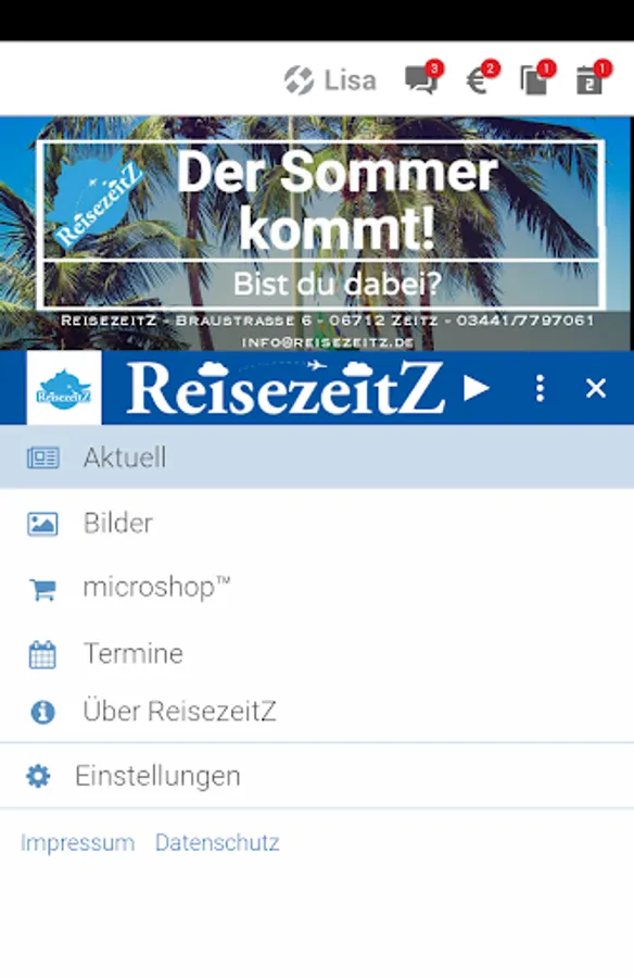 In the app you get the news directly on your smartphone. On request, you can also enable push messages. So you do not miss anything anymore. Furthermore, you can get your travel also book through the app, view the latest photos and videos of travel Zeitz or contact me. Have fun!