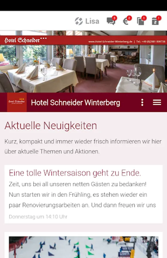Our hotel has 3 single rooms, 7 doubles, 5 triples and 4 guest rooms. About APP we inform you about current promotions, news about our hotel and give information on recreational opportunities and events in and around Winterberg. With the integrated contact form you can always make an inquiry with us.