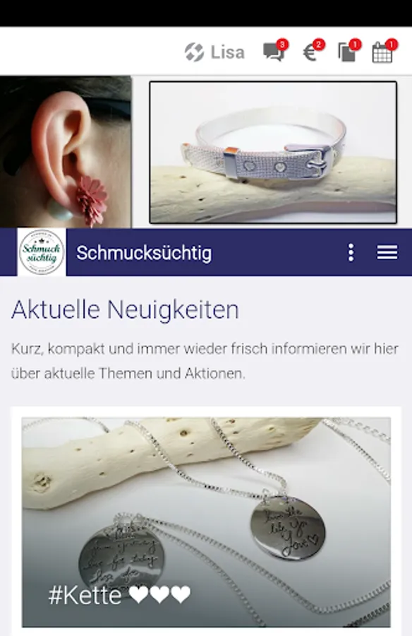 ** You get with this app, thanks to the many photos, a super overview of the product range of jewelry addict. You will not miss any new models and can also get in touch with me directly. **