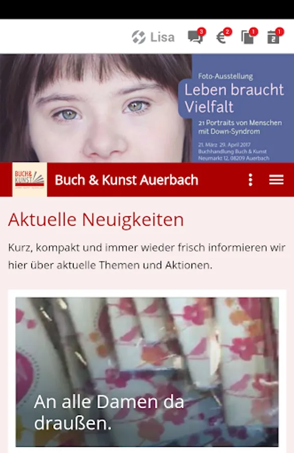 With the smartphone app of Buch & Kunst Auerbach, we digitize our traditional bookstore. About App you get information about the latest books, readings, Sunday shopping or sweepstakes and thus always stay up-to-date. Moreover, you can pre-order directly from the app your books. So you have a direct line to us in the store.