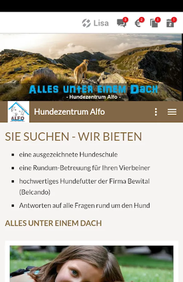 With our app you are always up to date and current training level of your course and receive thanks to numerous Galleries impressions from our center for dogs. You can also arrange directly via app an appointment with us.
