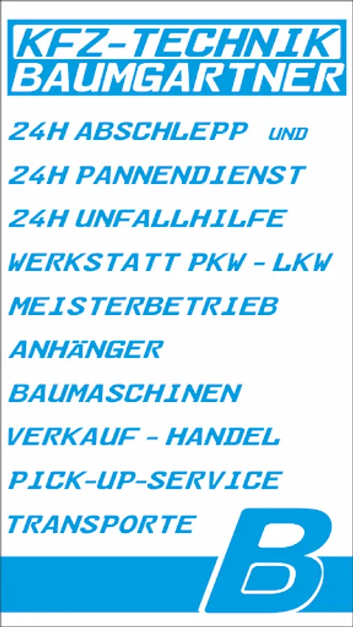 The KTB automotive technology Baumgartner 24 GmbH, is your professional recovery and towing and vehicle specialist from Teisendorf next the A8 motorway between junctions Neukirchen and Anger, and in the area around Traunstein, Waging am See, running, Freilassing, Piding Bad Reichenhall, Inzell and Ruhpolding working for you.