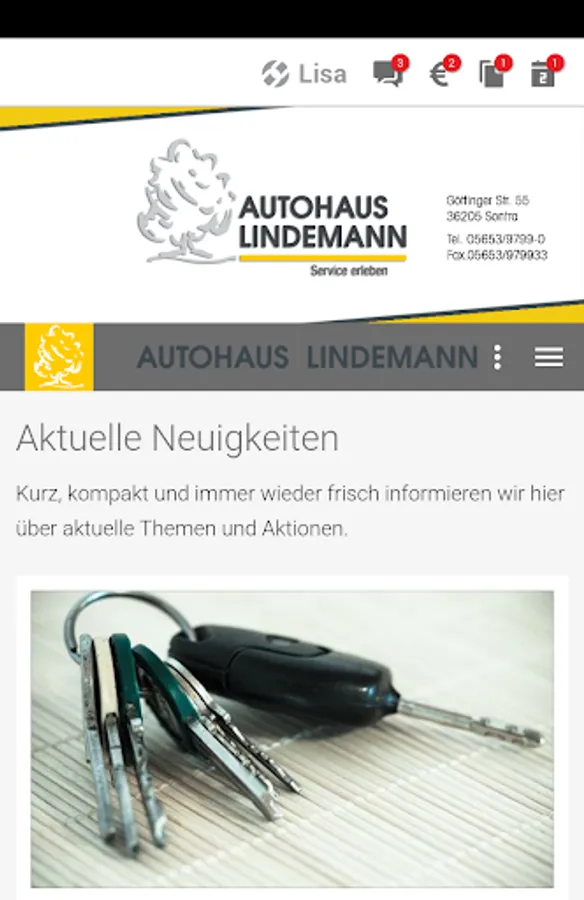 The dealership Lindemann is your professional workshop service for all brands, inspection according to manufacturer specifications and of course, cross-brand trade. At us you get everything from one source. First-class quality. With this app you are always informed about the latest news and you have the option at any time to contact us.