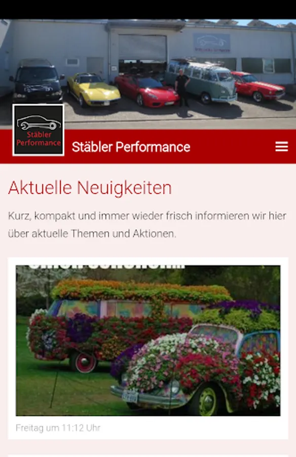 Stäbler performance is a young and dynamic company based in Oberderdingen, established in August 2016 by Jörg Stäbler. We specialize in restorations, customer services and modifications to vehicles of all types and ages. With our new PERFORMANCE app you are always up to date. We always present here our newest projects and conversions. A picture gallery keeps completed jobs for you. You can also directly by mail or phone to get in touch with us. Current News & Events come via push notification to your phone. In the future workshop dates can be requested. There are still details to follow in our range. For praise and criticism we always have an open ear. Have fun with our new PERFORMANCE app.