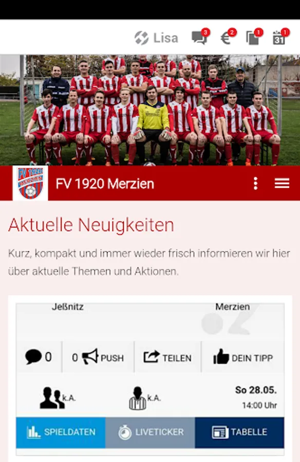 The app of the FV 1920 Merzien based on chayns® by Tobit.Software