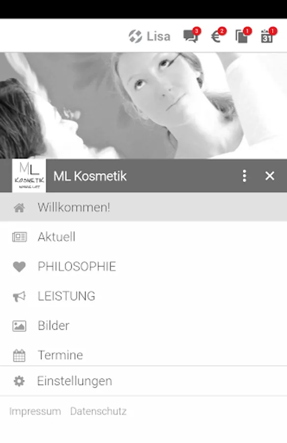 With the ML cosmetic app you are always informed. All news, events, photos, offers / actions and inspirations and care tips to land directly in your pocket.