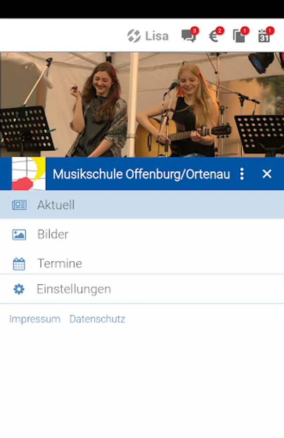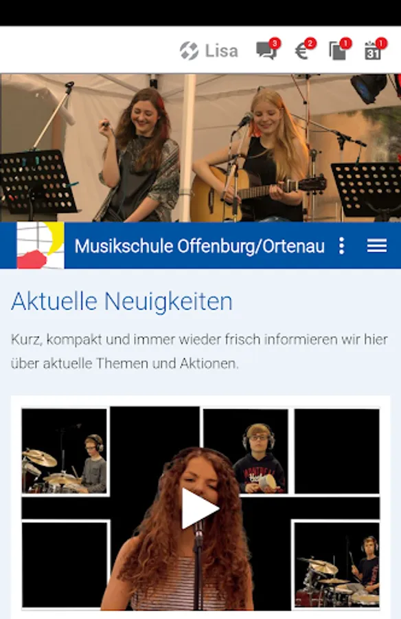 We inform with MS Offenburg app under News about our events, and of classroom and workshop offerings. In the section images, especially photos from our music school events are shown. Under Dates users are made aware of our concerts and events.