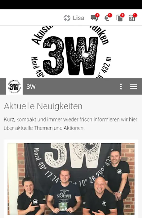 The app of 3W (represents three musicians from Wiedersbach) - acoustic rock from Franconia - keeping you up to date in terms of our events, music performances, news and other activities.