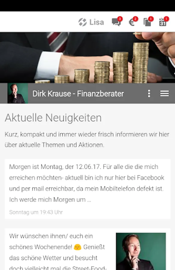Always be informed by the "Dirk Krause" APP about news in the field of payment optimization, financing, capital and investments, insurance ...