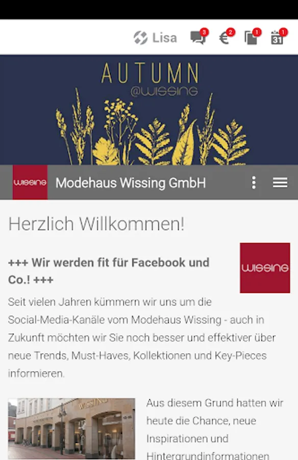 Wissing - strong fashion - strong brands. Your fashion house in Steinfurt-Borghorst and Emsdetten. And with the Wissing app you are always informed. All news, events, photos, offers and promotions land directly in your pocket.