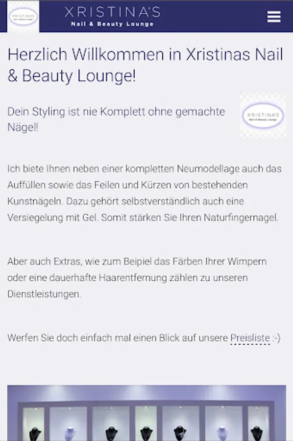 You still need to your outfit the perfect nails? Then come to Xristinas Nail & Beauty Lounge. We offer you a complete complete modeling and filling as well as the filing and trimming of existing artificial nails. Of course, with the appropriate seal your nails.