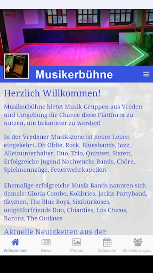 With the MusikerBühne App you are always informed. All news, events, pictures, offers / actions and new music groups land directly in your pocket.