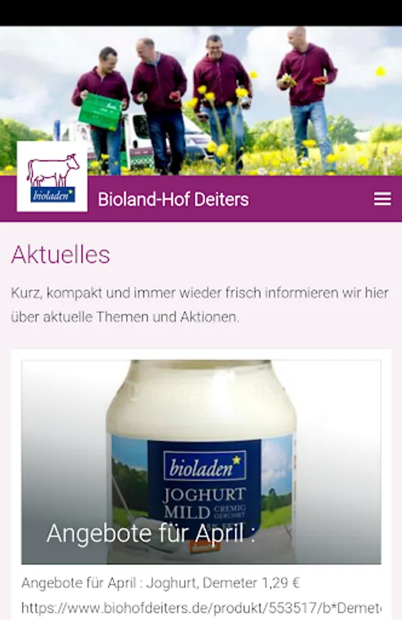 Onlineshop- faster access information and updates: With the official smartphone app from the organic farm Deiters they are closer to the action! Get the Bioland Hof Deiters app for free on your smartphone.