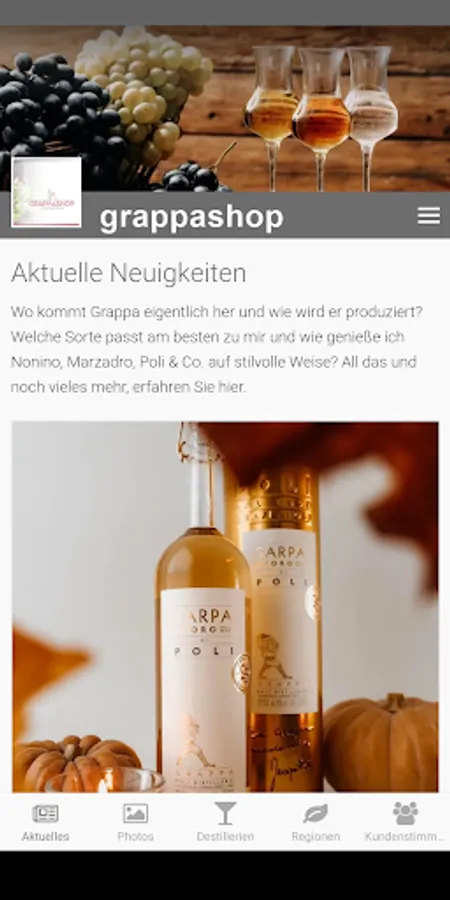 With the Grappashop app you are always informed. All news, events, pictures and offers / promotions land directly in your pocket.