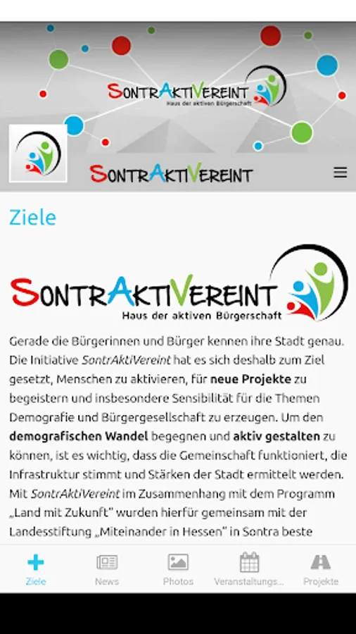 In order to make the infrastructure and the organization of voluntary work more attractive and, above all, more accessible, the local initiative "SontrAktiVereint - House of Active Citizenship" was established in close cooperation with the Foundation "Together in Hesse" under the program "Land with Future" ,