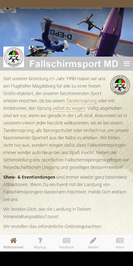 Since our foundation in 1990, we have established ourselves at Magdeburg Airport for everyone who wants to experience our fascinating sport, whether with a tandem jump or with ambitions to take the plunge ourselves.