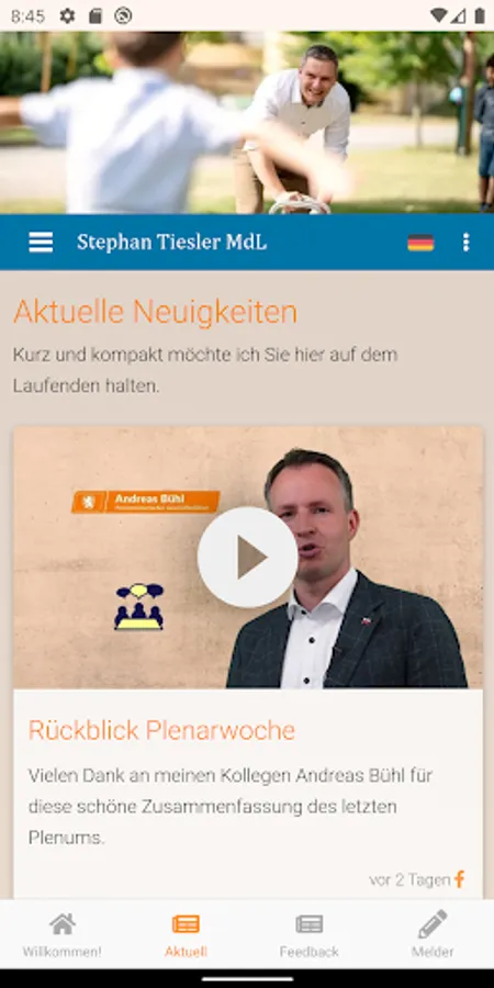As your member of the state parliament in the southern Saale-Holzland district, I take care of your concerns. With this app you can find out more about my work and get in contact with me. With the Stephan Tiesler MdL app you are always informed. All news, events and pictures go straight to you.
