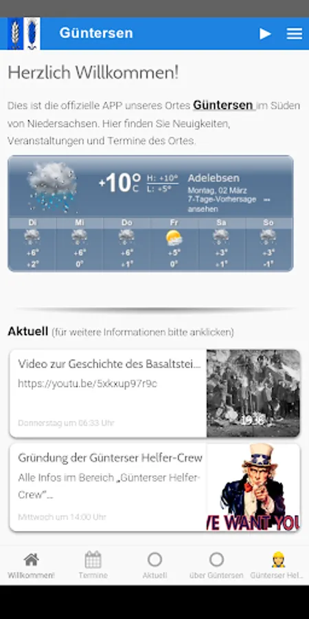 Güntsersen is a village with a "future" and would like to use this APP to communicate dates / events of the village to its fellow citizens.