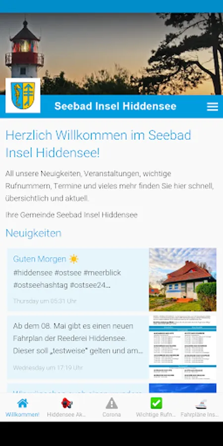 With the Hiddensee app you are always informed. All news, events, pictures and offers / promotions, timetables and much more end up right in your pocket. And now new: An integrated "detector" for all worries, problems and wishes. Everything just a * tap away *.