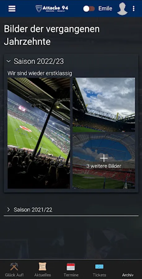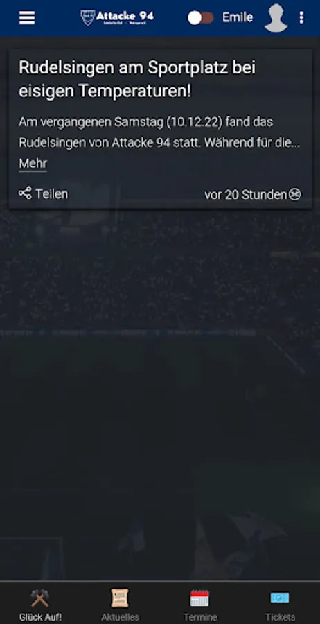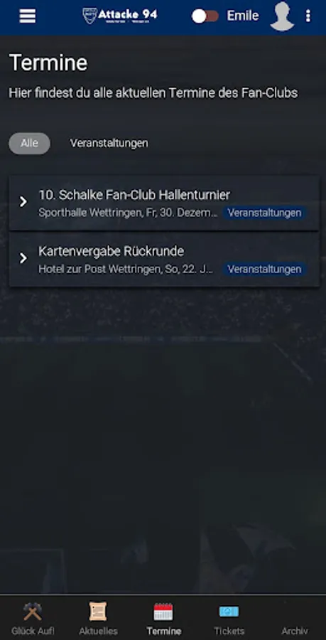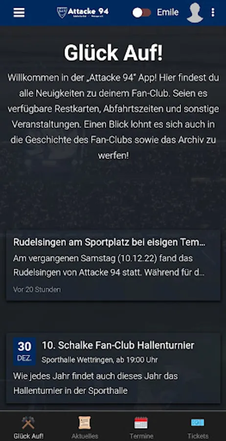 The "Attack" app offers you news about the fan club. Here you can keep an up-to-date overview of dates, departure times and available tickets and bus seats.