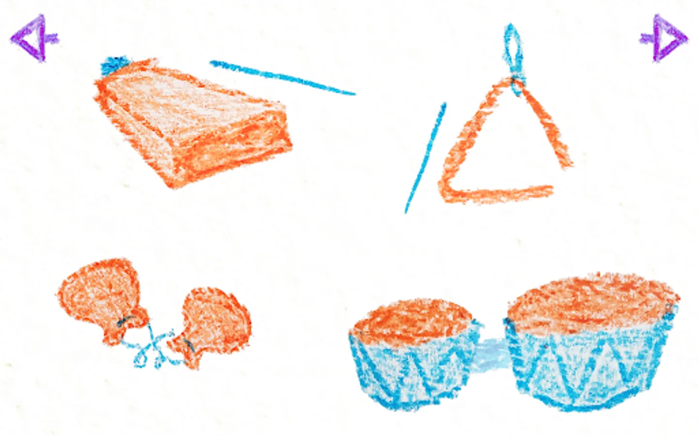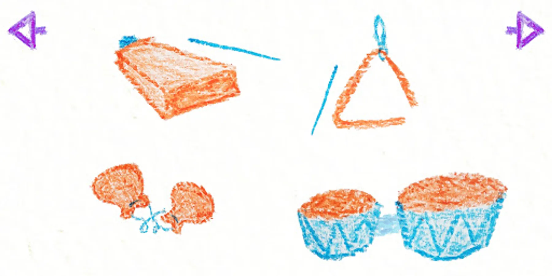 Discover musical instruments with your baby's first apps. Hand-drawn illustrations and real instrument sounds.
