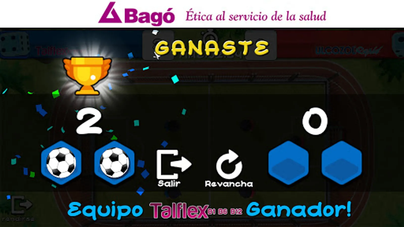 Bagó - Soccer given, is a board game with classic soccer elements. Challenge your friends online and try to reach the top of the scoreboard, try your luck with the dice and beat as many teams as possible.