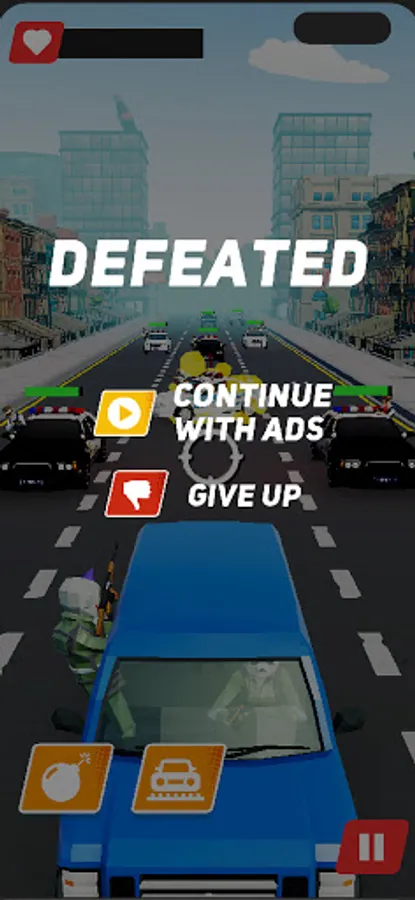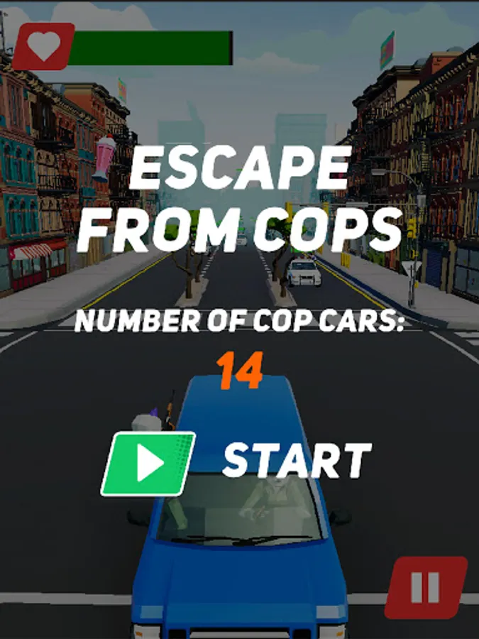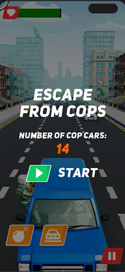 You planned your great robbery! Robbed the bank, got rid of security, filled the money bills into bags and loaded your truck with them. Excellent! Now there is just one problem: all of city's police department is in your tail. Did your master plan not include this step? Don't worry, everything can be forgotten in this world. So, you should bail out your freedom, you only need to deal with a few hundred police cars. Was it a few thousand? No matter, you can do it somehow! Well, good luck :)