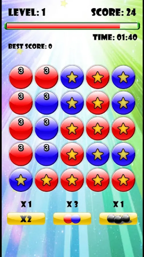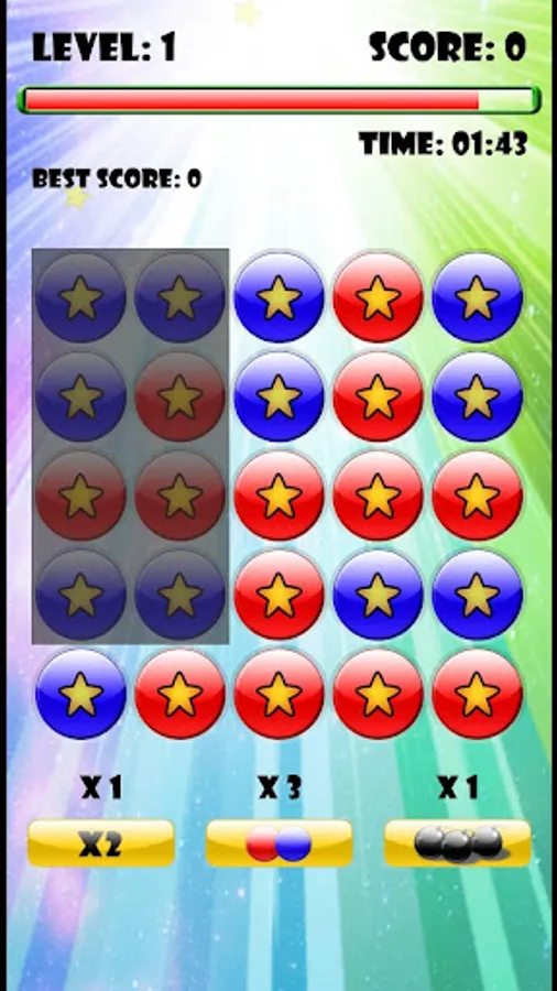 Touch any grid and drag out a rectangle having four corners of the same color.
