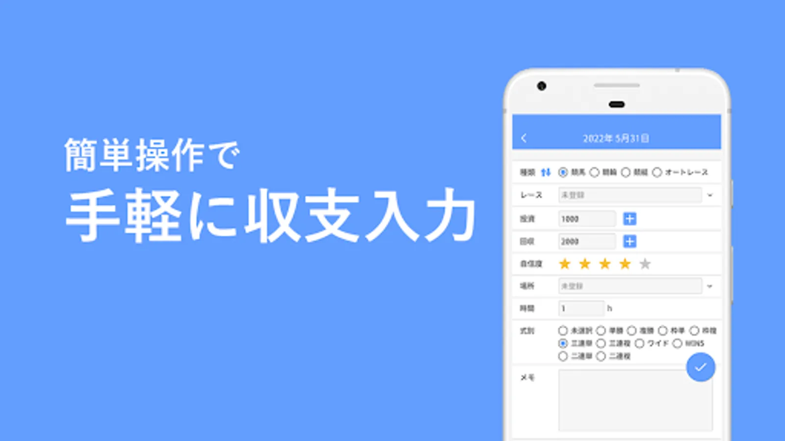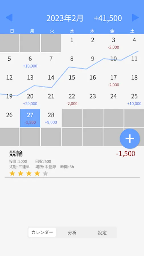 ・You can record the results of casino, mahjong, day trade, stocks, FX, pachinko, pachislot as well as public games.