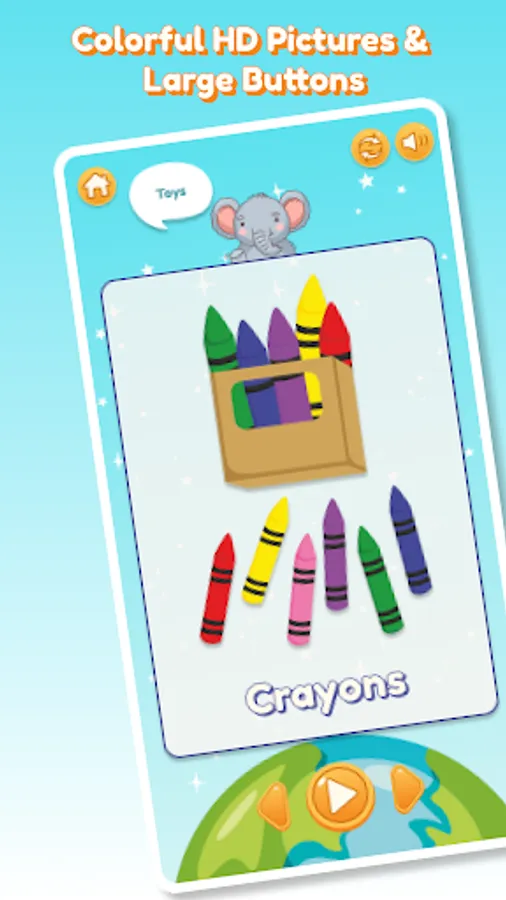 It is simple to use. Select a category, review flashcards, and interact with the animations. Building a strong vocabulary, learning language and pronunciation skills have never been so easy and exciting for babies, toddlers, and preschoolers!