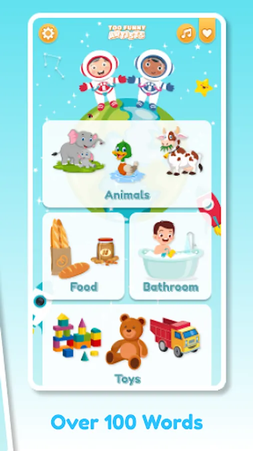 Our app features 9 kid friendly categories and over 100 words! Flash cards teaching method is the best for babies, toddlers, and children allowing them to learn at their own pace. Your kid will learn everyday words while having fun. Play and learn together with your toddler.