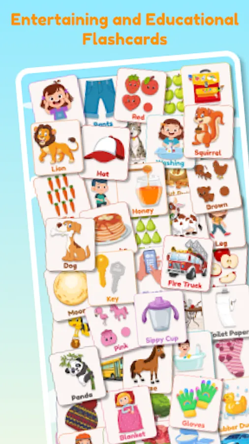 Learn First Words features 15 kid friendly categories and over 150 words. Flashcards teaching method is great for babies, toddlers, and children allowing them to learn at their own pace. Your kid will learn everyday words while having fun. Play and learn together with your toddler.